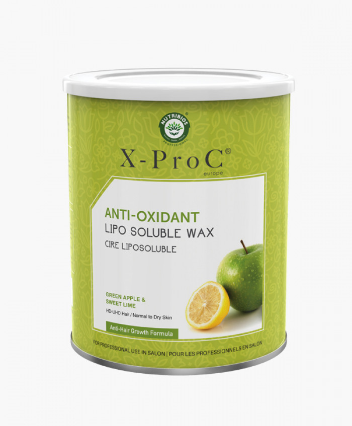 X Pro C is a unique blend of natural extracts that eliminate loose cells, nourishes, hydrates prevents hair growth, is gentle while offering superior grip during depilation. Green apple and Sweet lime offers antioxidant benefits that protect the skin against environment while turmeric is known for its Anti-Hair growth properties. HD-UHD Hair / Normal to Dry Skin FOR PROFESSIONAL USE | POUR LES PROFESSIONNELS DIRECTIONS TO USE Remove the lid and place the container in a wax heater and warm the wax until it melts to a flowing consistency. Set the wax to a working temperature of 40 degrees. Clean the skin using X-Pro C Pre Wax Gel. On clean, dry skin apply a thin coat of wax in the direction of hair growth. Place the wax strip and press it to make a firm adhesion. Hold the skin taut and pull off the strip in the opposite direction of hair growth in a quick but firm motion. Comfort the skin by applying pressure with your fingers or palm of your hand. Use X-Pro C post wax oil after depilation to remove residue, nourish and calm the skin Not recommended on wounds, cuts, sun burnt or skin that is undergoing any other treatment or if there was an adverse reaction to waxing previously.